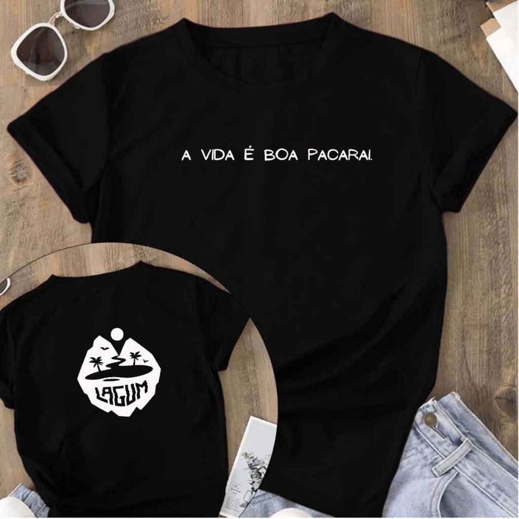 Camisetão Feminino Estampado Frente e Verso Camiseta Lagum Banda A Vida É Boa Pacarai Várias Cores 100% Algodão
