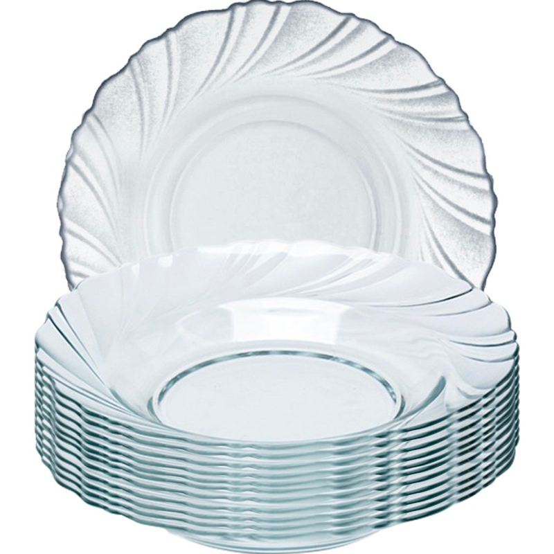 Kit 12 Pratos Fundo Liso de Vidro - Transparente e Resistente