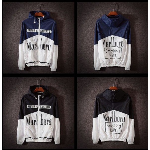 Nova Marlboro Homens Mulheres Moletom Com Capuz Jaqueta Corta-Vento Ocasional