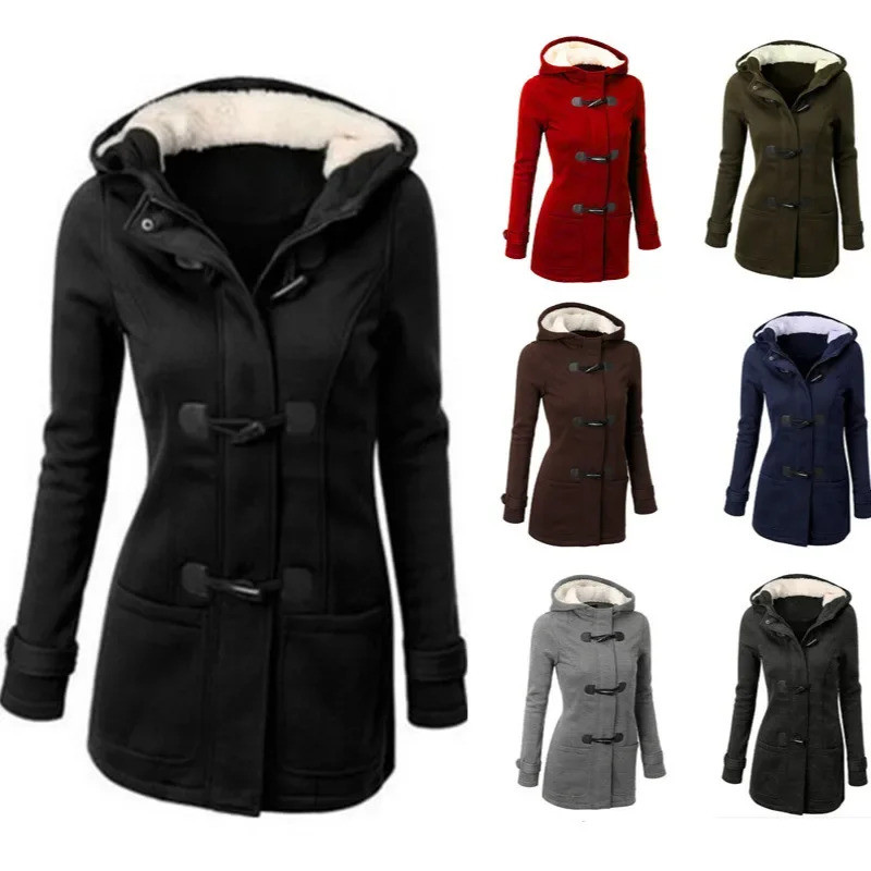 Moletom com Capuz e Forro de Fleece Multicolorido Jaqueta de Comprimento Médio para Mulheres Estilo Europeu e Americano
