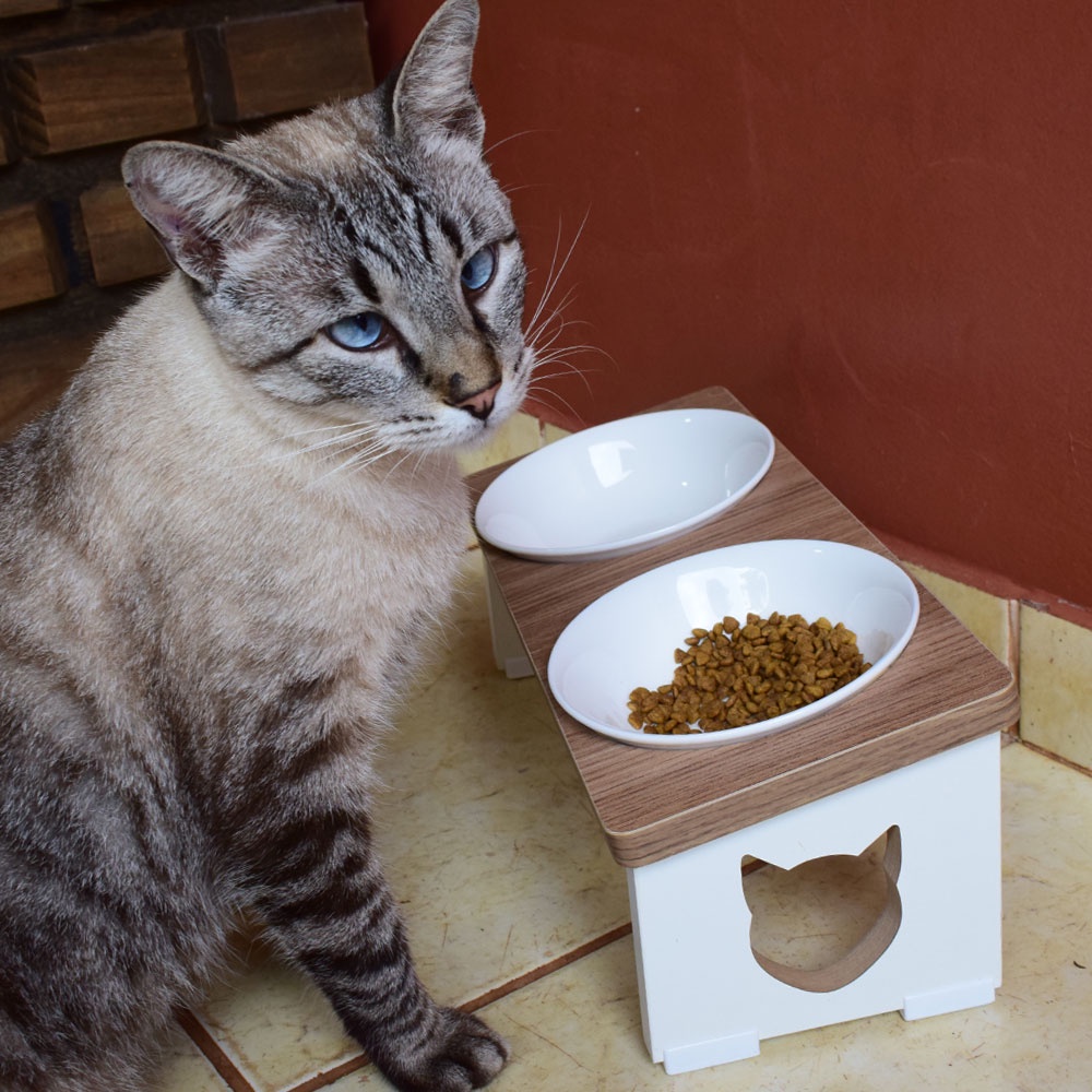 Comedouro Bebedouro Duplo Pet Mdf Elevado Gato