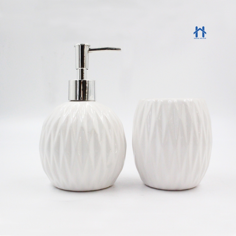 Kit Jogo de Banheiro Lavabo Porcelana 2 Peças Para Decoração Com Dispenser Sabonete Líquido e Porta Escova de Dente