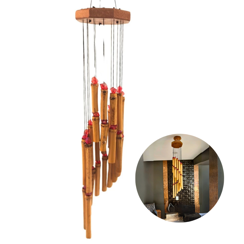 Mensageiro dos Ventos Sino Vento Mobile Casa Jardim Quintal Bambu Natural Caracol 14 Tubos Som 2115