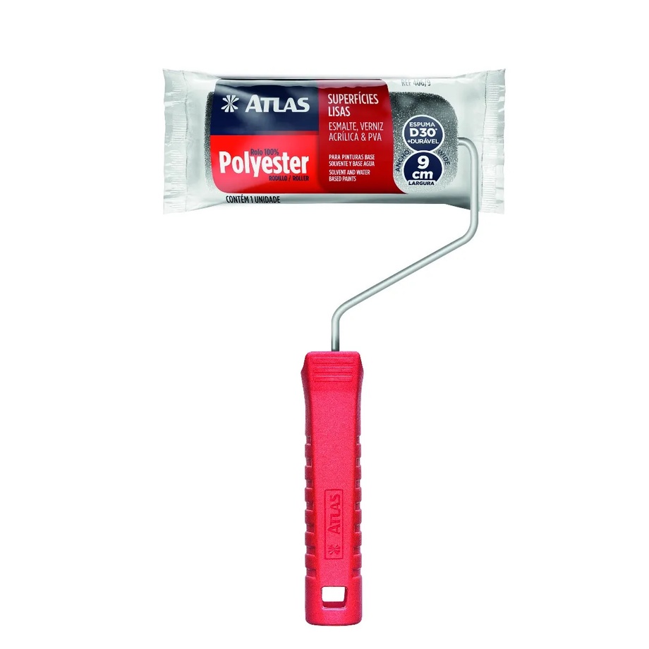 KIT 10 ROLO DE PINTURA ESPUMA POLIESTER 9CM CABO PLÁSTICO ATLAS
