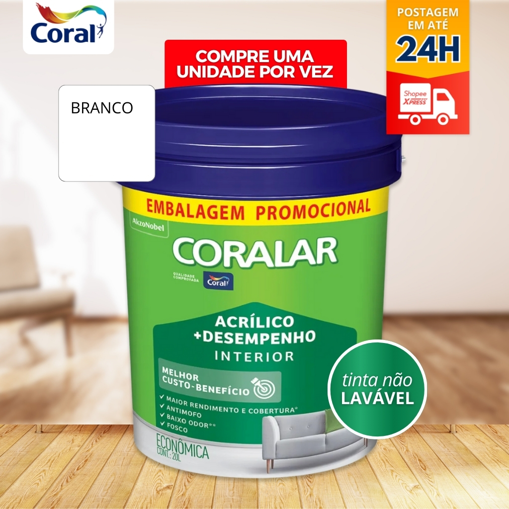 Tinta Acrílica Econômica Mais Desempenho Cor Branco Interior 18 Litros Coralar Coral