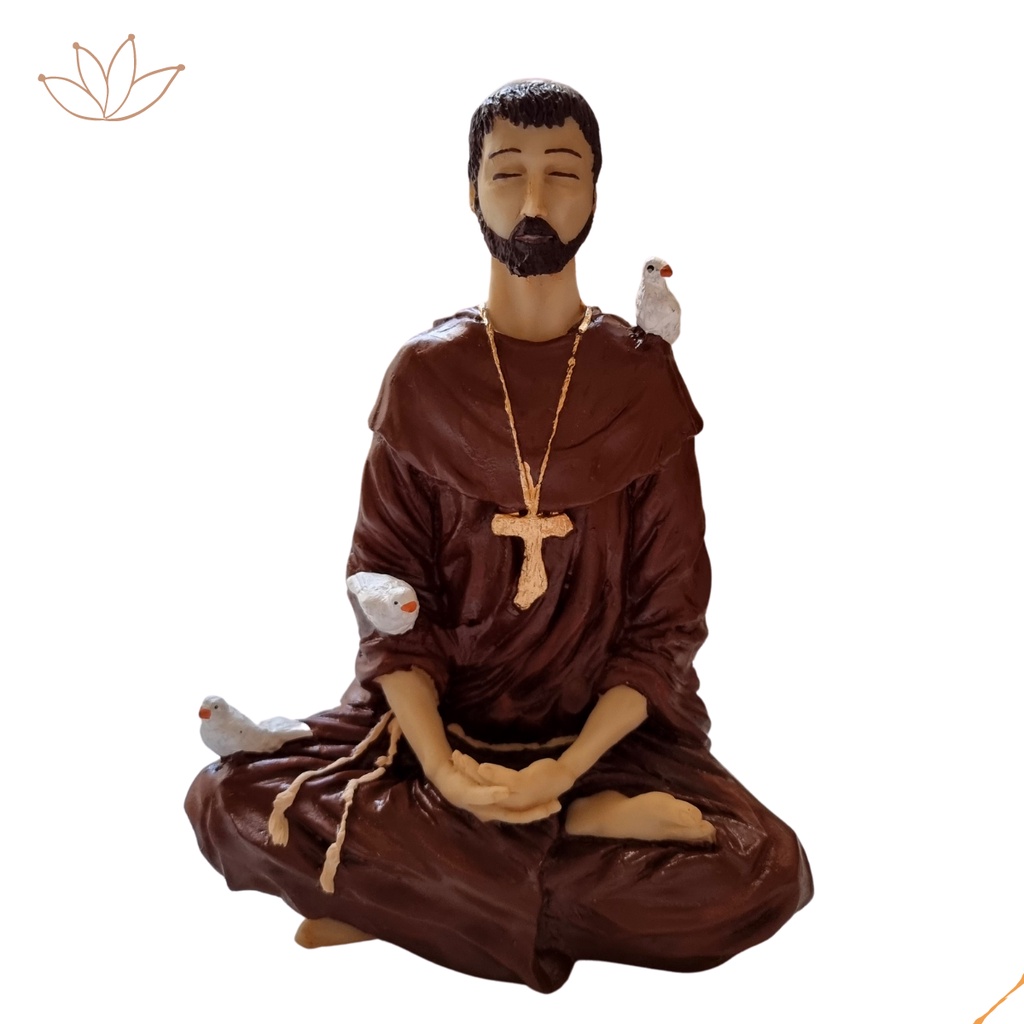 Estátua São Francisco de Assis Meditando em Resina Colorido