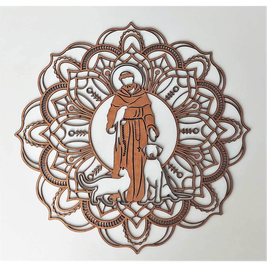 mandala decorativa São Francisco de Assis em mdf cru 42 CM .
