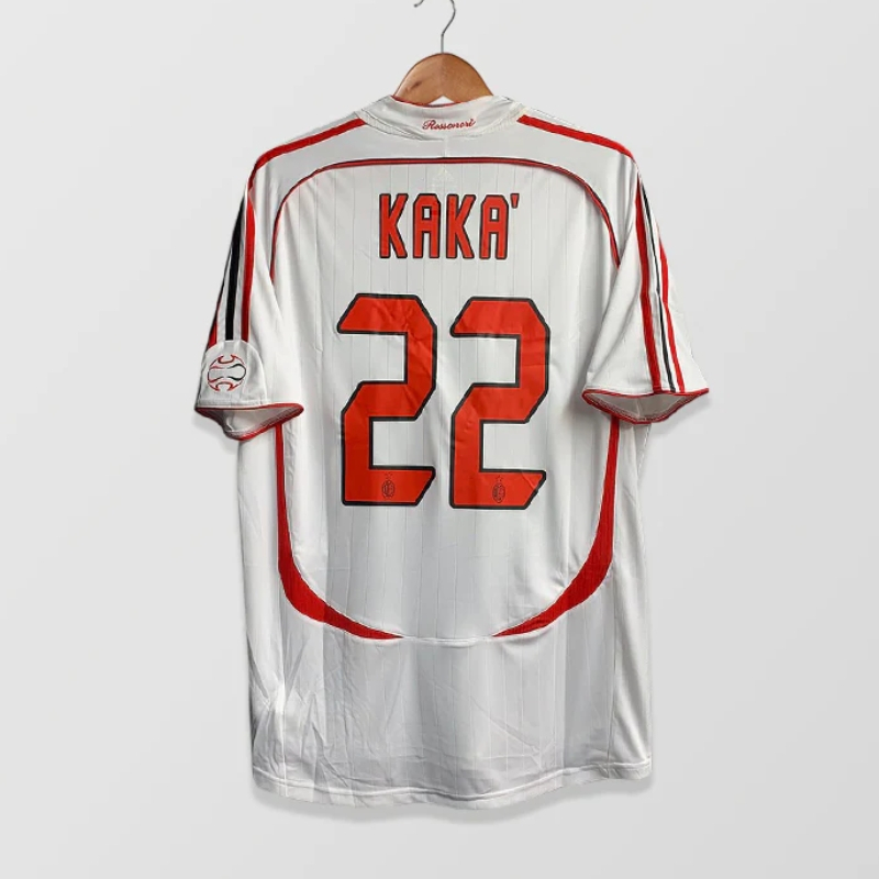 2006-2007 Retro AC Milan Classic Football Camisa Branca Away 06 07 Manga Curta/Homens Longos 22 # QAKA 21 PIRLO 9 NZAGHI 99 RONALDO 80 Ronaldinho UCL 6