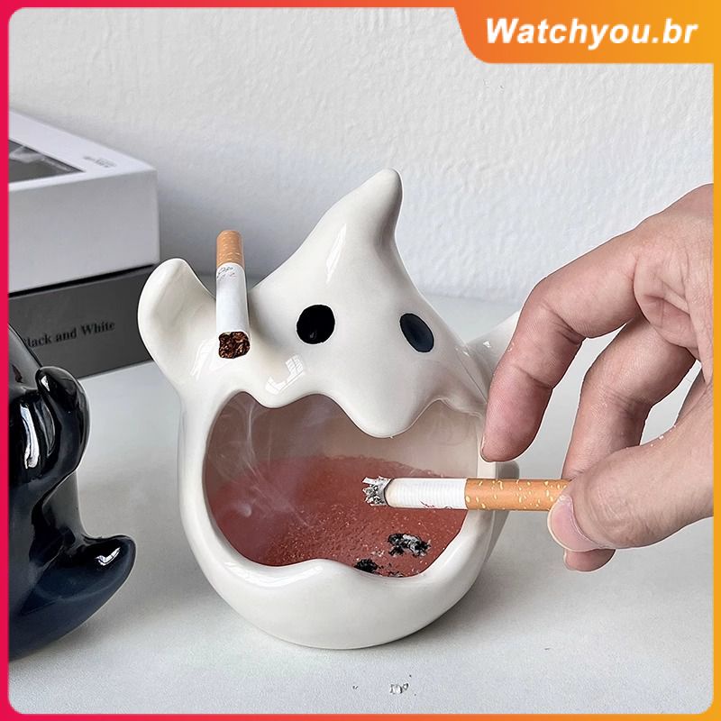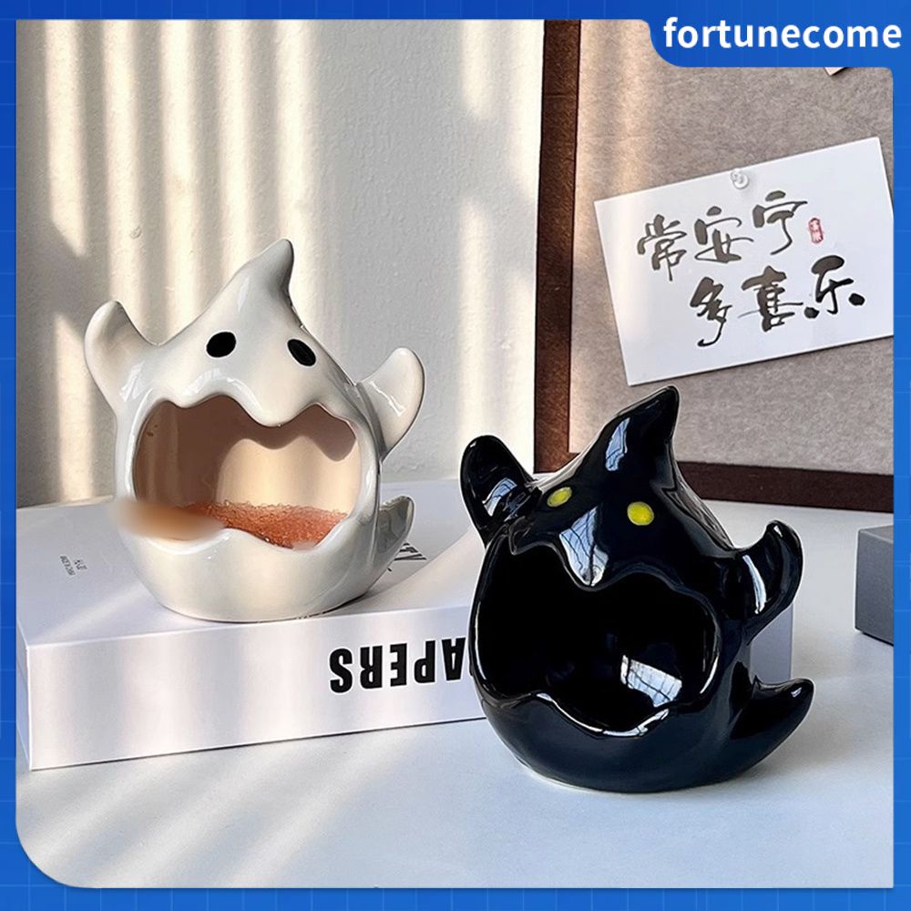 Halloween dos desenhos animados fantasma cinzeiro bonito fantasma castiçal ornamentos decorativos cerâmica americana sala de estar aromaterapia vela bandeja fortunecome