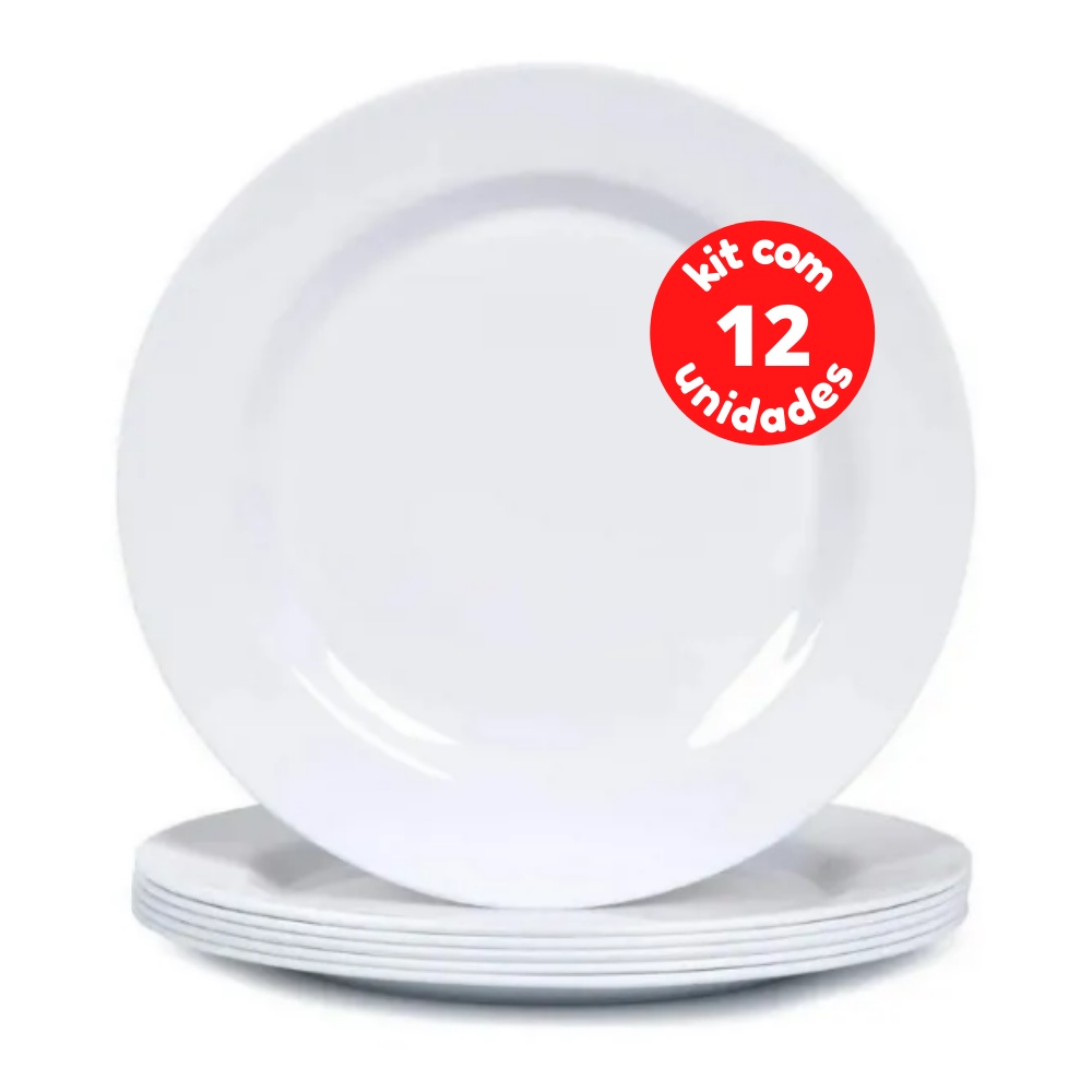 Kit c/12 Prato Raso 25cm Melamine Redondo Plástico Resistente