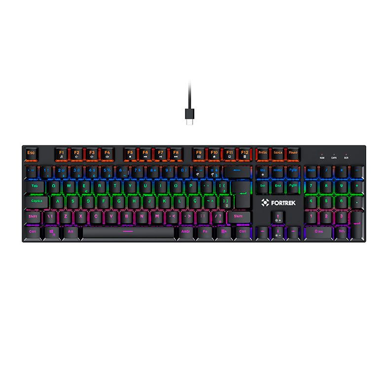 Teclado Mecânico Gamer Fortrek Black Halk, LED, Switch Outemu Brown, ABNT2, Preto - 75939