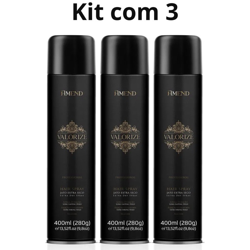Kit Com 3 Hair Spray Ultra Forte Valorize 400Ml, Amend Jato Extra Forte