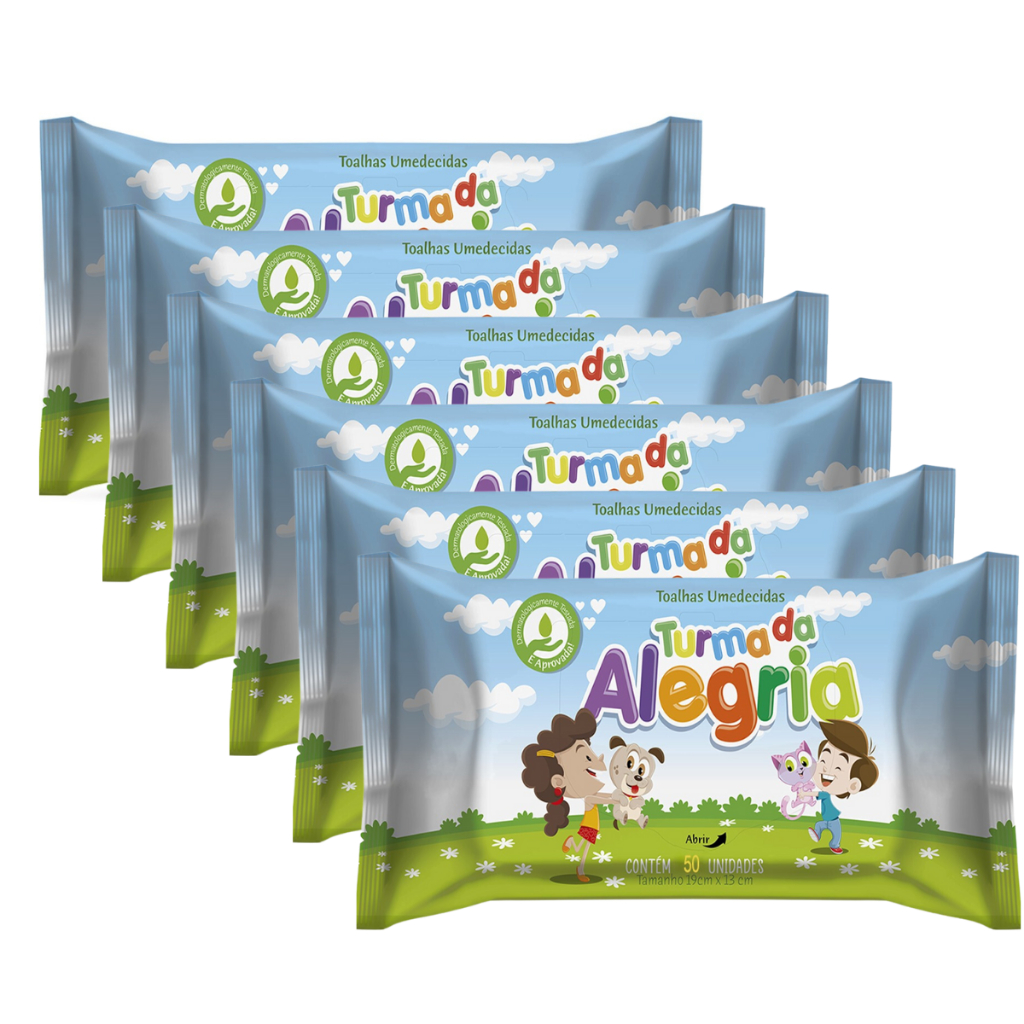 Kit C/06 Toalha Umedecida Para Bebês Turma Da Alegria - 50 Unidades