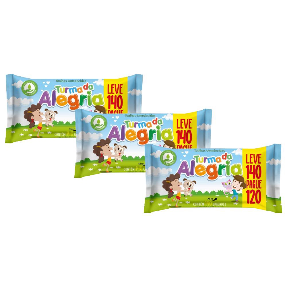 Kit 3x Toalha Umedecida Turma da Alegria C/140