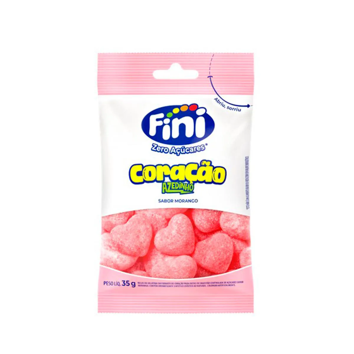 Balas de Gelatina Fini Zero Açúcares Coração Morango Azedinho 35g
