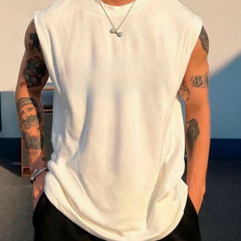 Camiseta Masculina Oversized Regata Cavada Lisa Preta E Branca