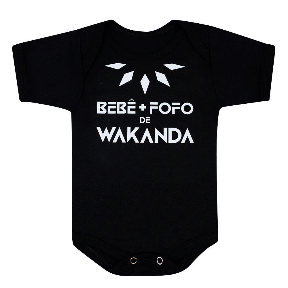 Body Bebê Manga Curta Suedine Preto Wakanda (RN/P/M/G) - Bebê Fofuxo