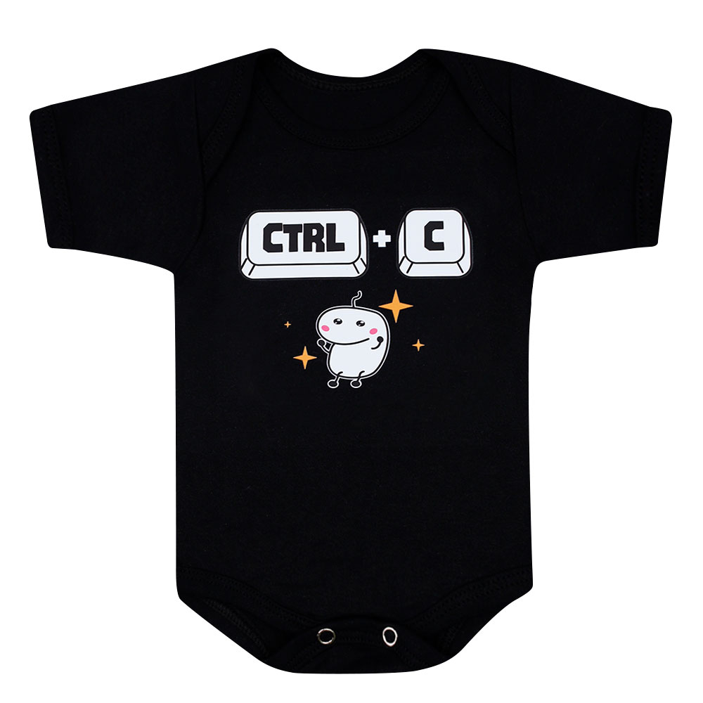Body Bebê Manga Curta Suedine Preto Ctrl C (RN/P/M/G) - Bebê Fofuxo