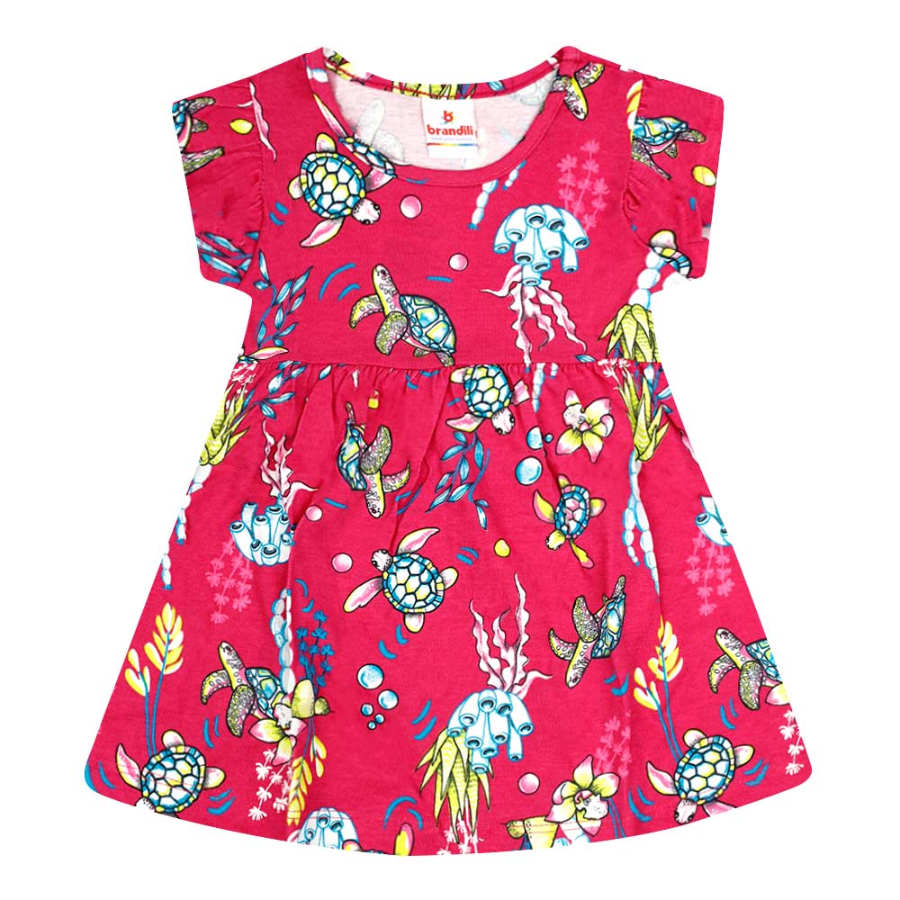 Vestido Bebê Manga Mini Meia Malha Rosa Fundo do Mar (1/2/3) - Brandili