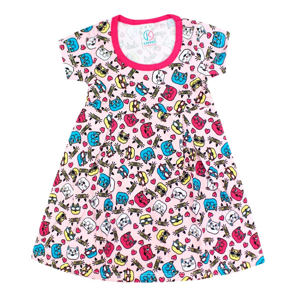 Vestido Bebê Manga Curta Cotton Rosa Gatinhos (1/2/3) - Kappes