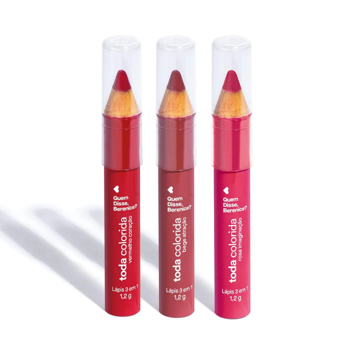 Combo Lápis Multifuncional 3 Em 1 Toda Colorida: Bege Atração 1,2G + Vermelho Coração 1,2G + Rosa Imaginação 1,2
