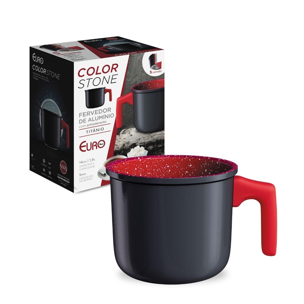 Fervedor De Alumínio Antiiaderente Leiteira Colorstone Titânio 1,9 Litros Indução 10 cm Euro Home
