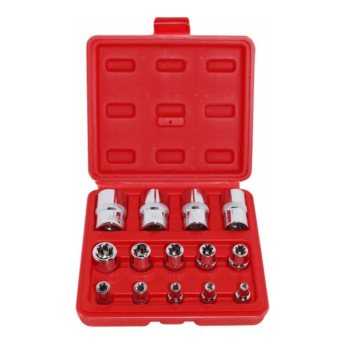 Jogo De Soquete Torx Fêmea 1/2, 3/8 E 1/4 14 Peças