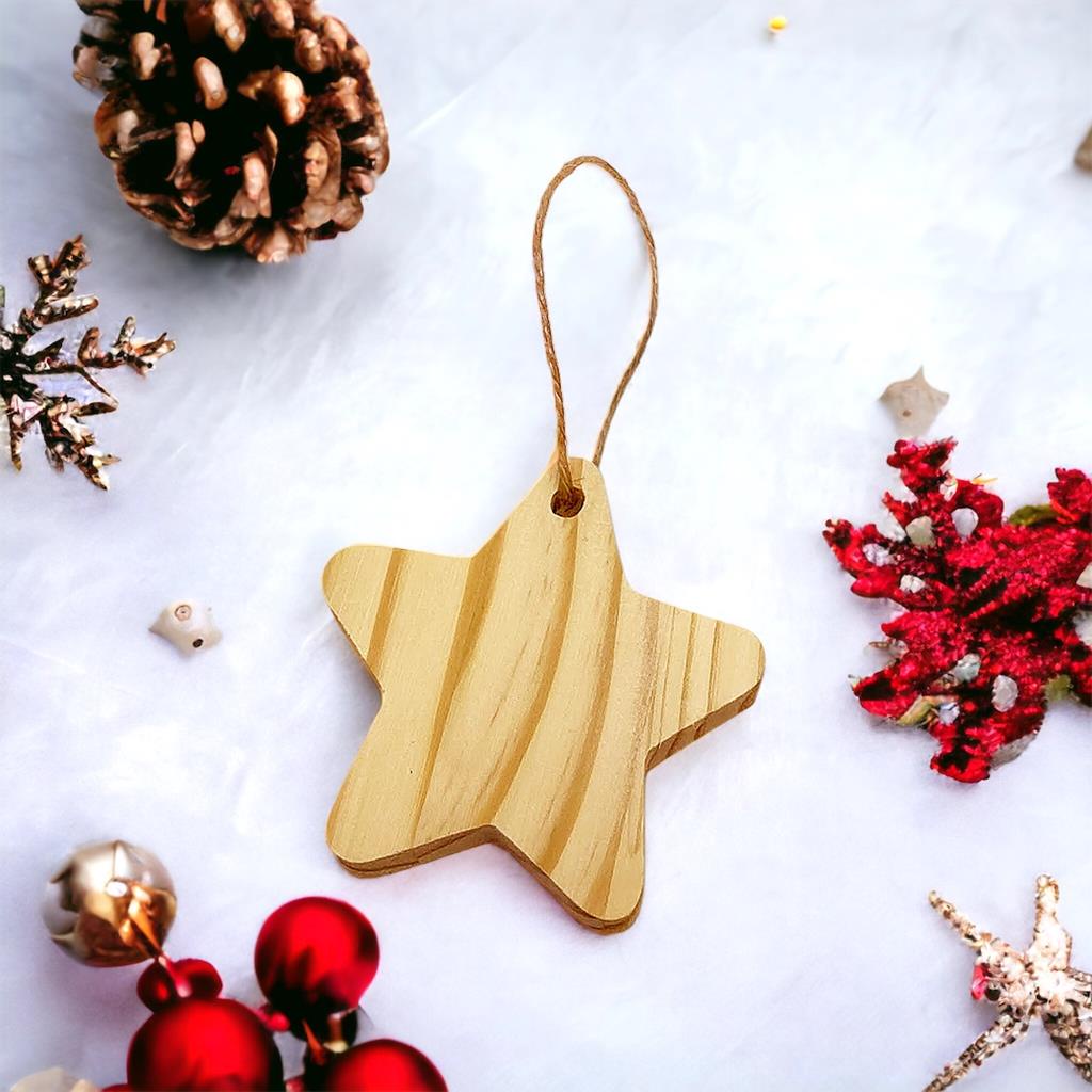 Kit 10 Enfeite para Pendurar Arvore de Natal Decoração Pinheiro Pintar, Escrever e Colorir Artesanato Madeira de Pinus