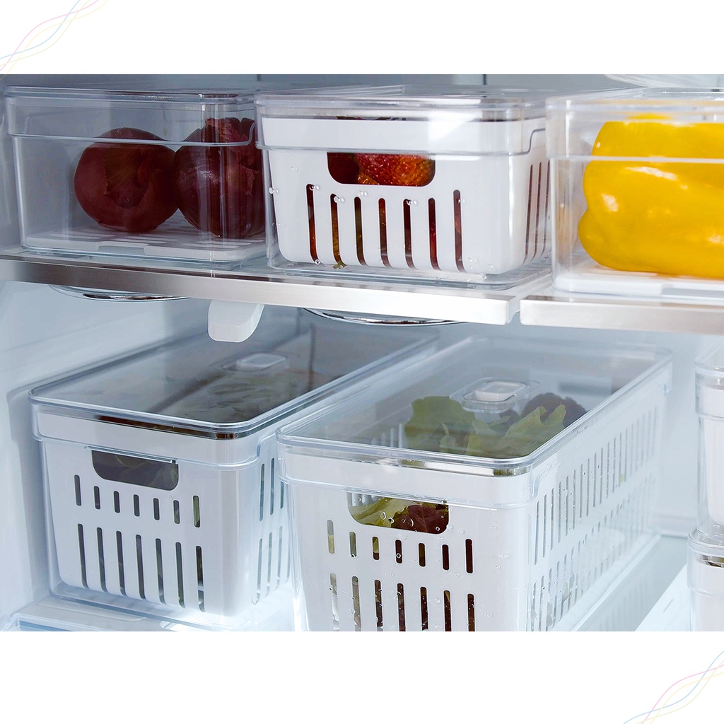 Organizador de Alimentos Pote p/ Geladeira Clear Fresh Ou Porta Frios, Ovos, Cesto/ Bandeja Drenagem