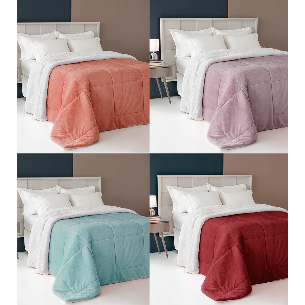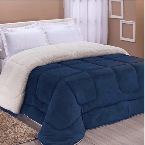 Edredom Queen Dupla Face 400 Fios Lã de Carneiro Coberdrom Pele De Carneiro Sherpa