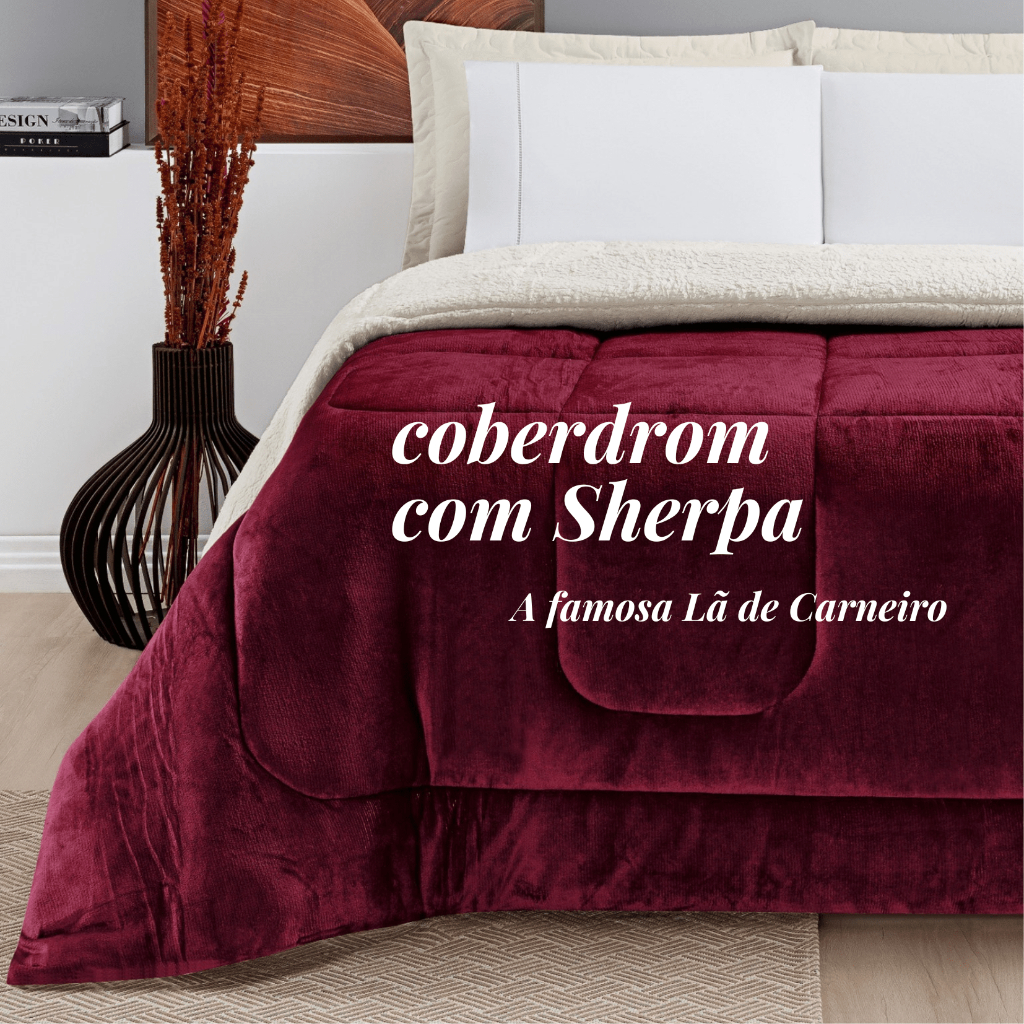 Coberdrom Edredom Cama Casal Queen Dupla Face Sherpa Lã Carneiro e Manta