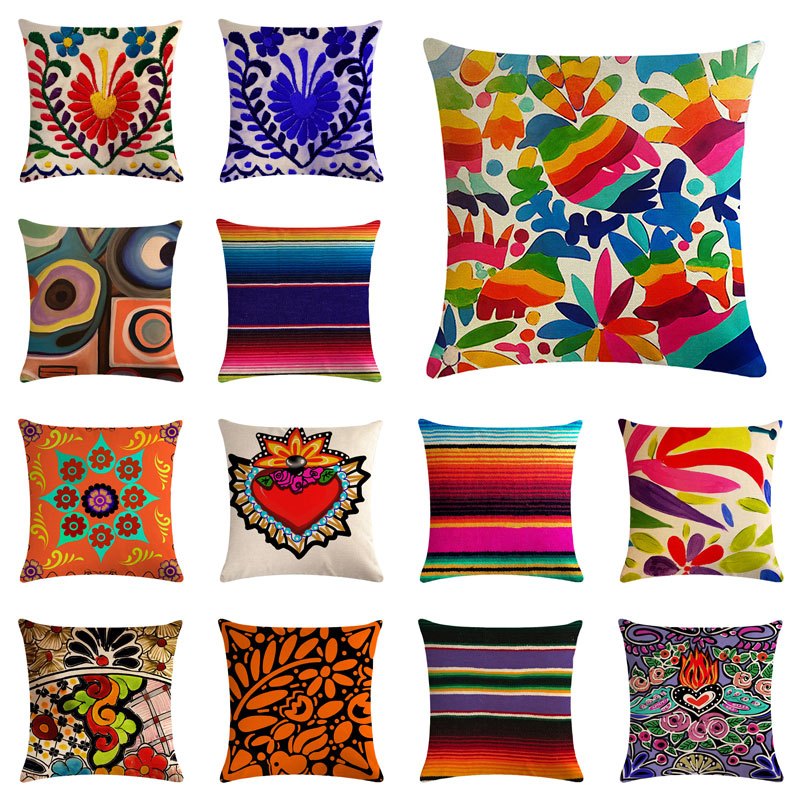 45 * 45cm/35 * 35cm Capa De Almofada De Linho Padrão Mexicano Para Carro Decorativa Home
