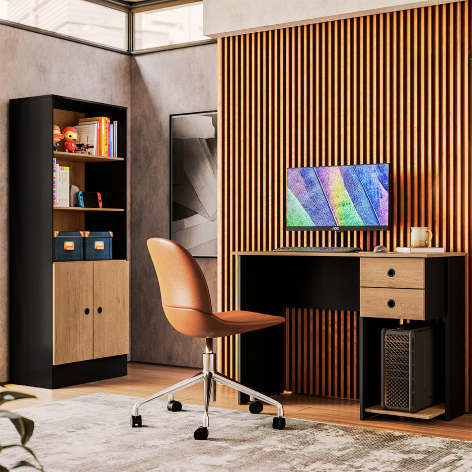 Escrivaninha Mesa Computador Elisa Home Office Com Estante Para Livros 2 Gavetas Para Quarto Sala Escritorio Trabalho