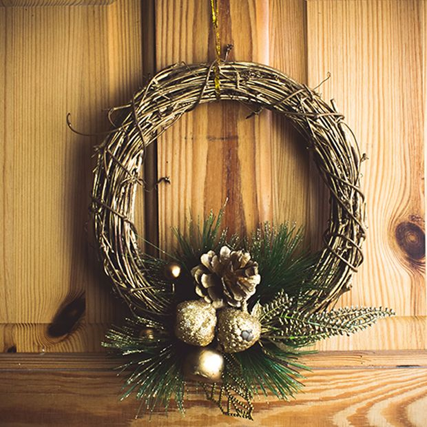 Guirlanda Natalina Rústica De Galhos Secos Com Decoração Golden 20cm