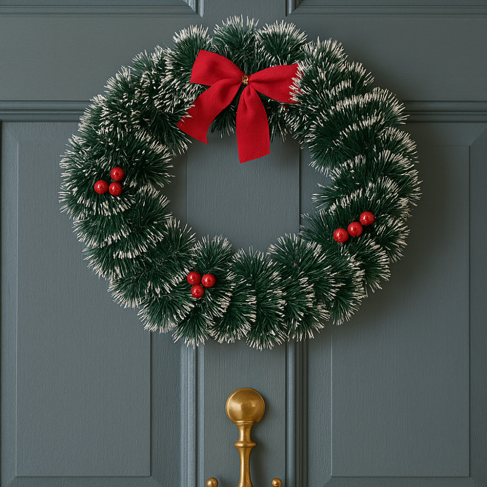 Guirlanda Festão Nevada Verde Ou Verde 25Cm Para Porta Com Laço Vermelho Enfeite De Natal Decoração Natalina