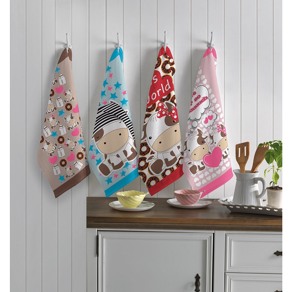 Kit C/5 Pano de Copa/Prato Atoalhado Bordados 45x65cm - 100% algodão