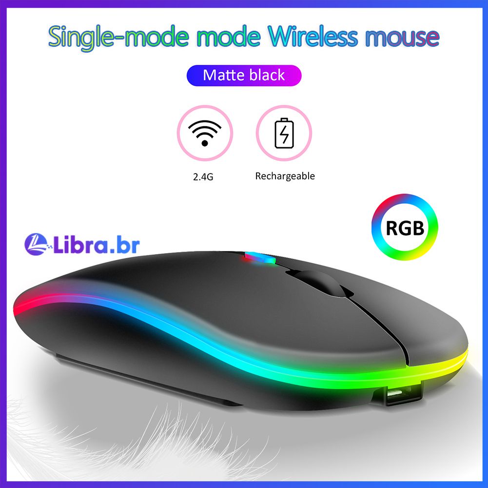 Mouse Sem Fio Recarregável Óptico Wireless Led Rgb Colorido Ergonômico Usb 2.4 Ghz para Notebook Computador Pc Desktop TV Smart