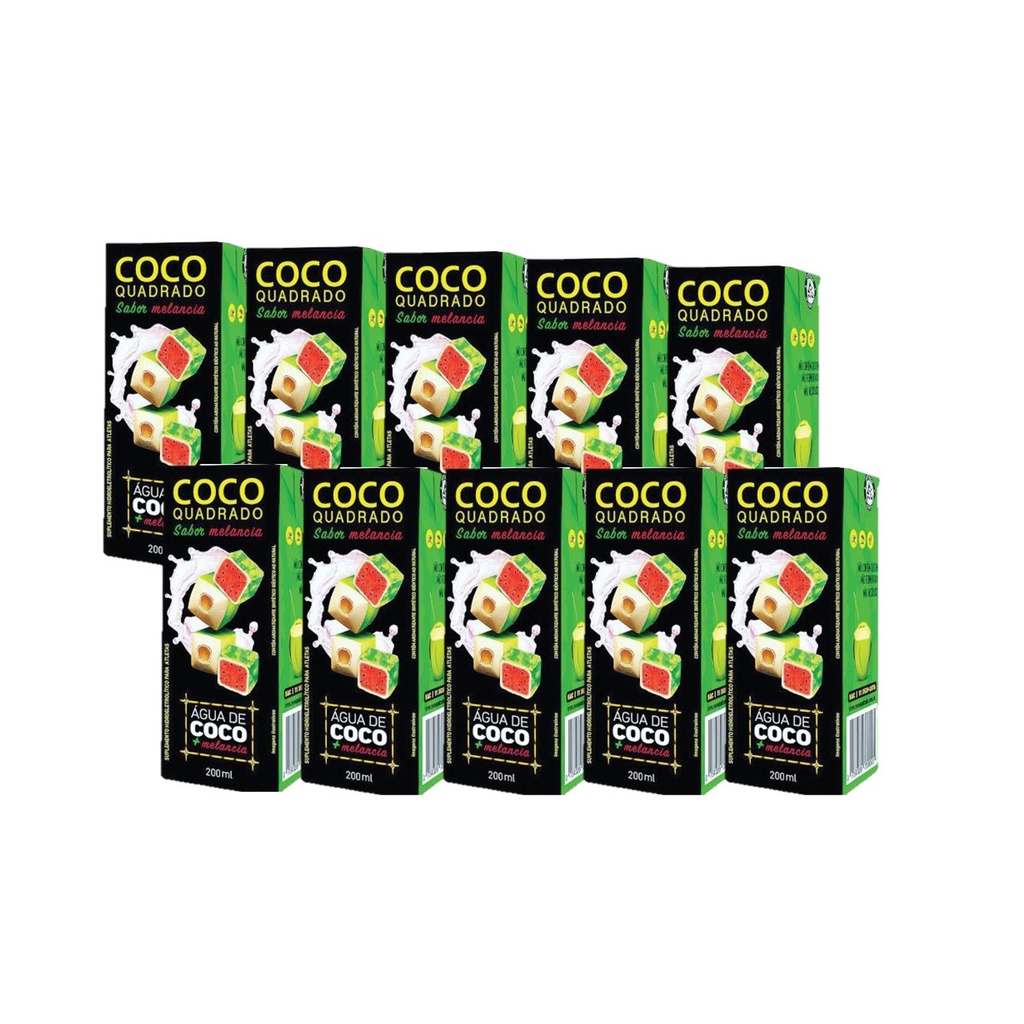 Kit Água de Coco Quadrado Melancia 200ml - 10 unidades
