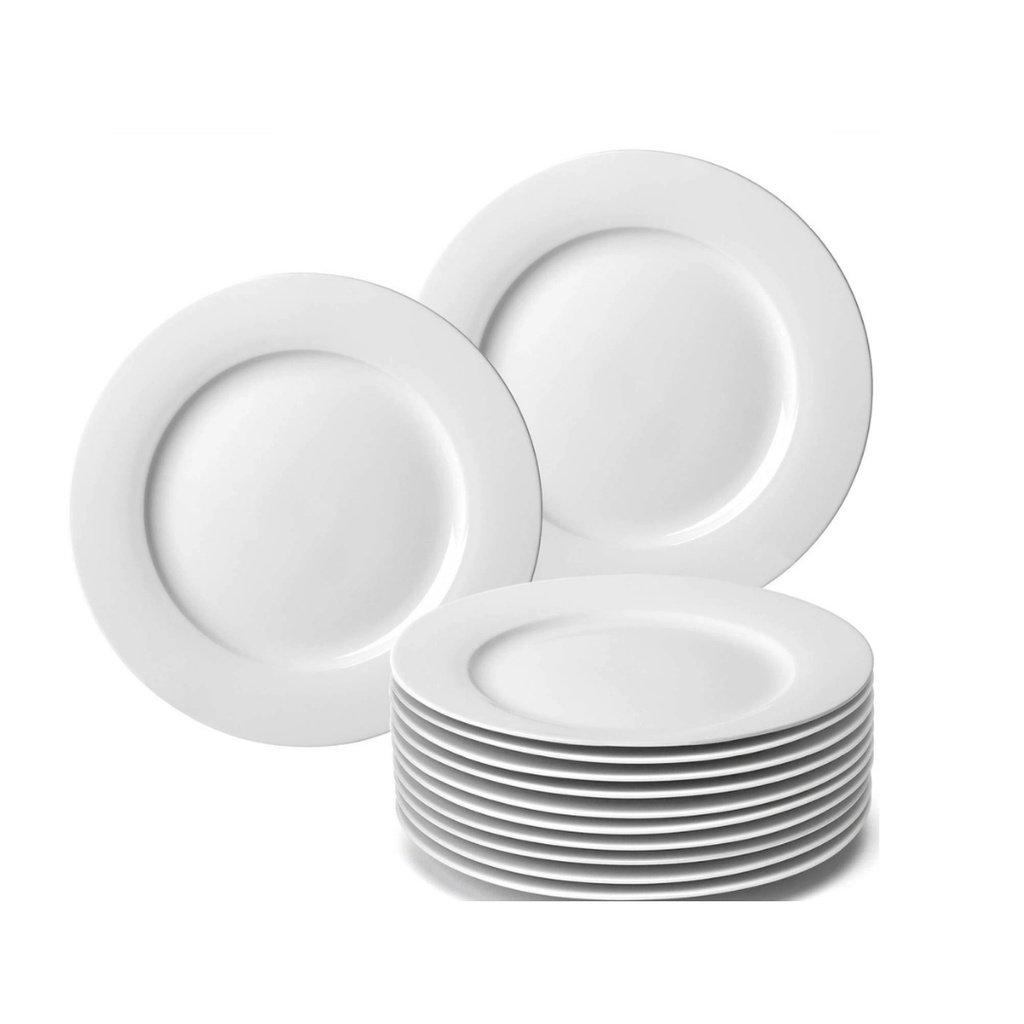 Kit Com 6 Prato Branco Raso 25cm Cerâmica Para Buffet e Restaurante.