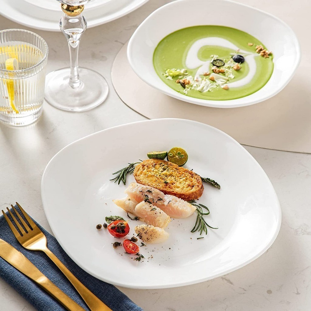 Jogo Conjunto 6 Pratos Vidro Branco Quadrado Raso 28cm Jantar Restaurante Bar Buffet Kit OpaLine