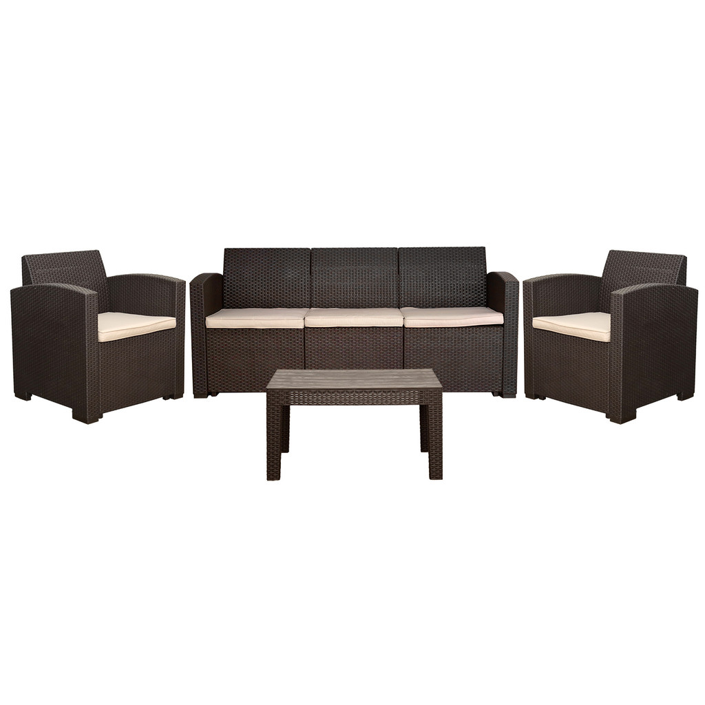Conjunto de Sofá Estilo Rattan Confort 4 Lugares para Jardim Área Externa D7home