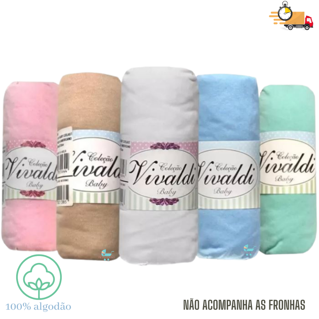 Kit de 4 Lençol Avulso Para Berço Padrão Americano com Elástico 100% Algodão