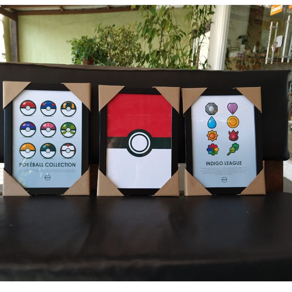 Quadros decorativos Pokémon Pokebola Pokéball Collection Insígnias Indigo League Pikachu pôster