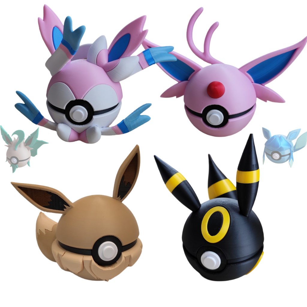 Eevee Sylveon Espeon Umbreon Leafeon Glaceon pokebola pokeball pokébolas pokemon decoração coleção