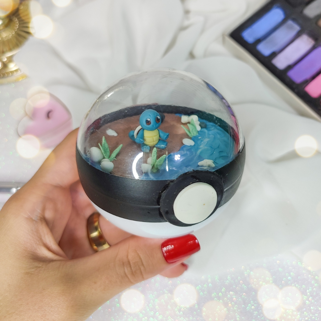 Terrario Squirtle Pokebola Pokeball Pokéball Pokébola Pokémon Pokemon Anime Jogo Gamer Pikachu Temático Mangá Série Biscuit Terrário Porcelana Fria