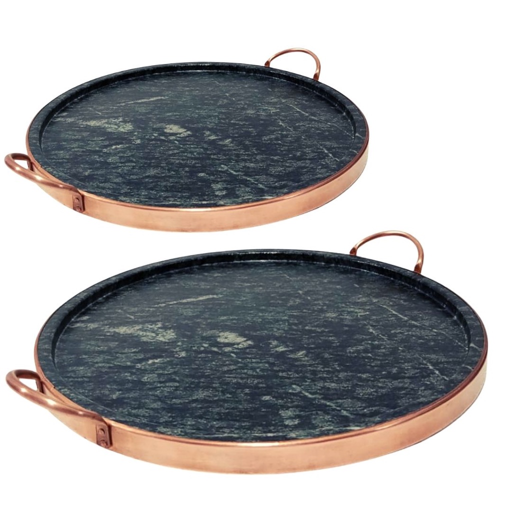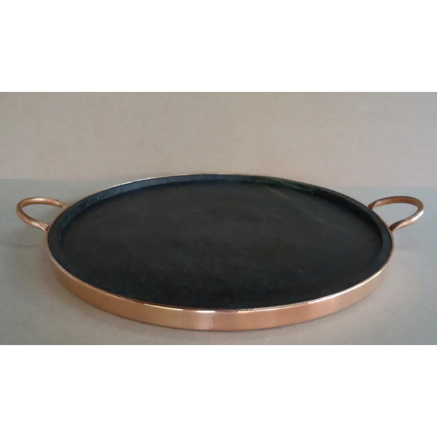 Kit Forma Pizza Em Pedra Sabão Alça De Cobre Kit 23+32Cm Curada