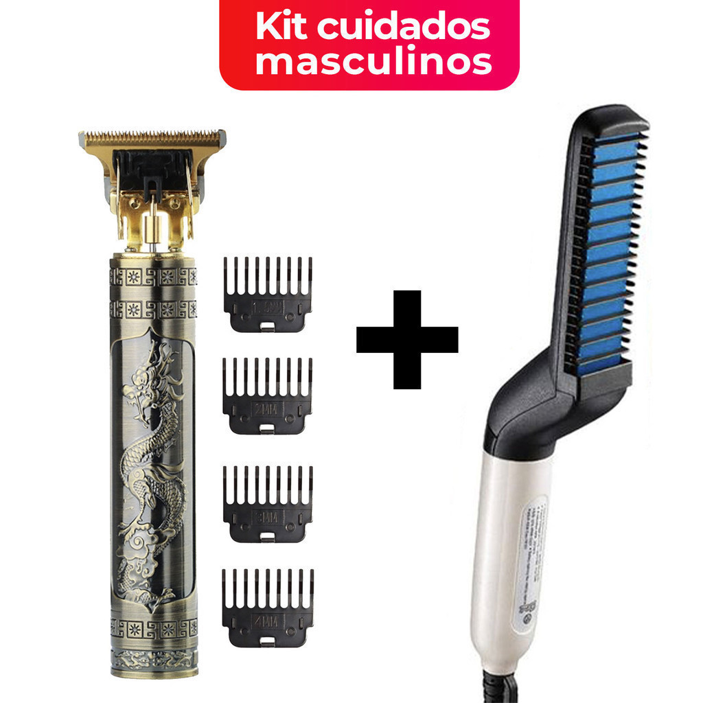 KIT 2 Escova Barba Chapinha Modelador Pente e Máquina Profissional T9 Para Acabamentor Cabelo Para Barba-Kit cuidados masculinos