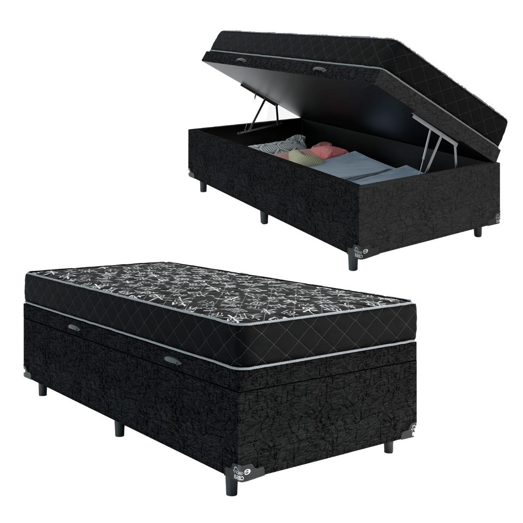 Cama Box Baú Solteiro Resistence Suede Preto + Colchão Solteiro Resistence Espuma D23 Com EPS 14x88x