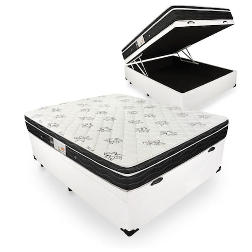 Cama Box Com Baú Casal + Colchão De Molas - Ortobom - Physical Nanolastic - 138x188x65cm - Preto