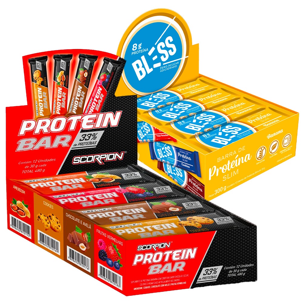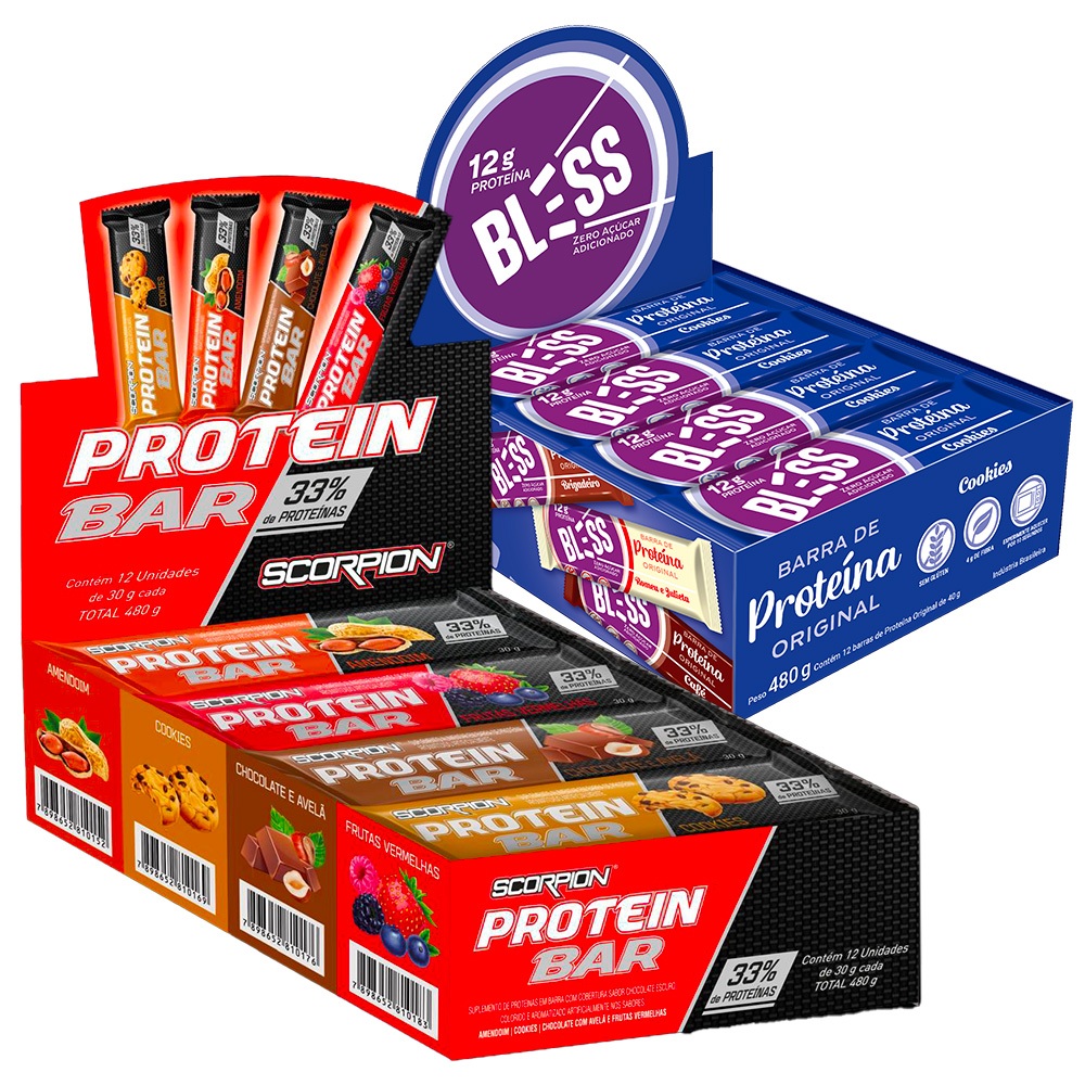 Kit Barra de Proteína Scorpion Protein Bar 30g + Barra de Proteina Bless 40g Zero Açúcar